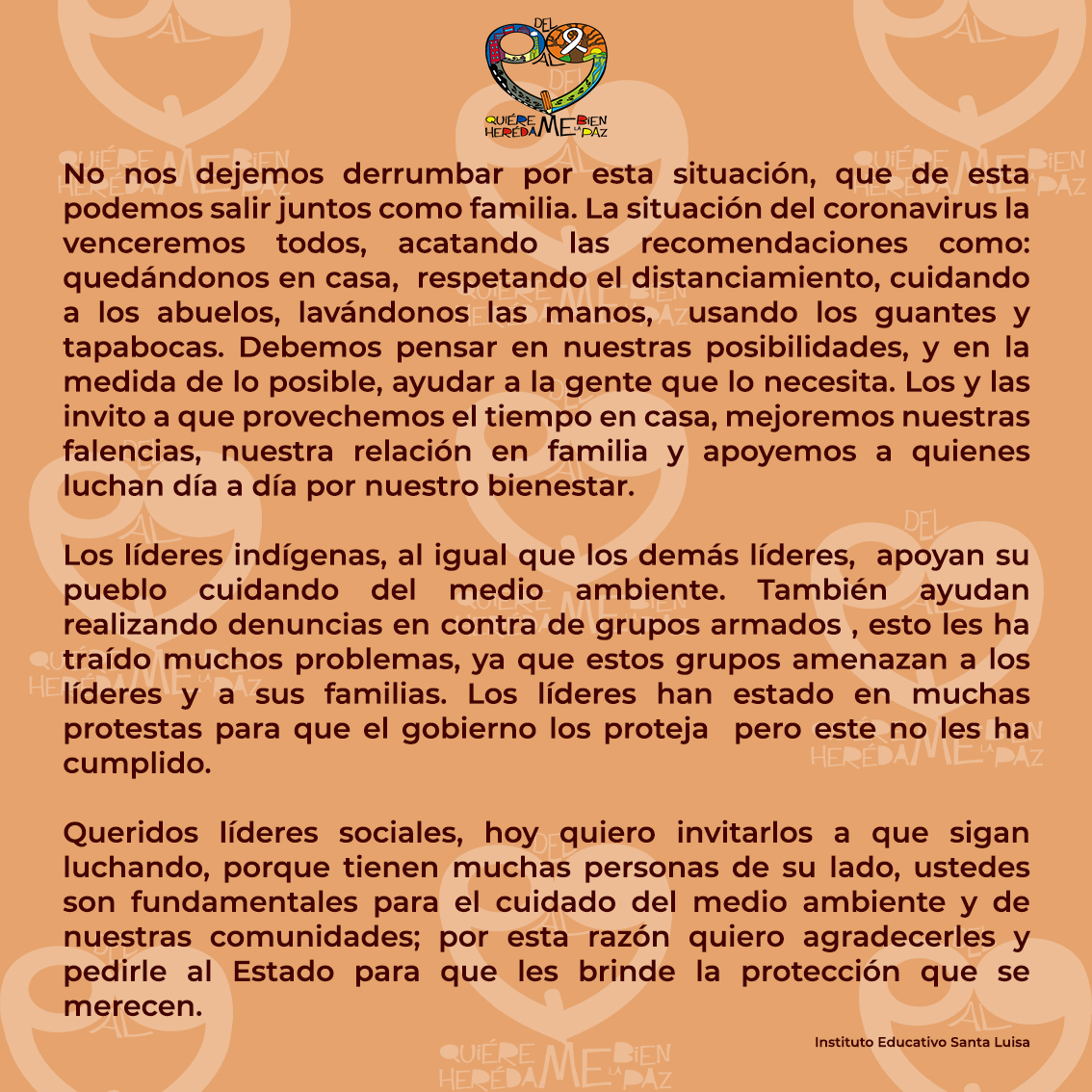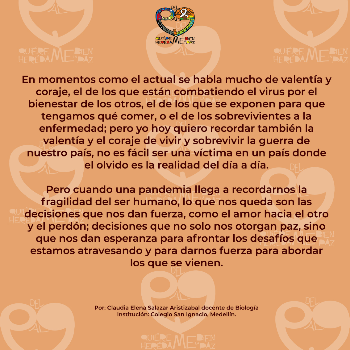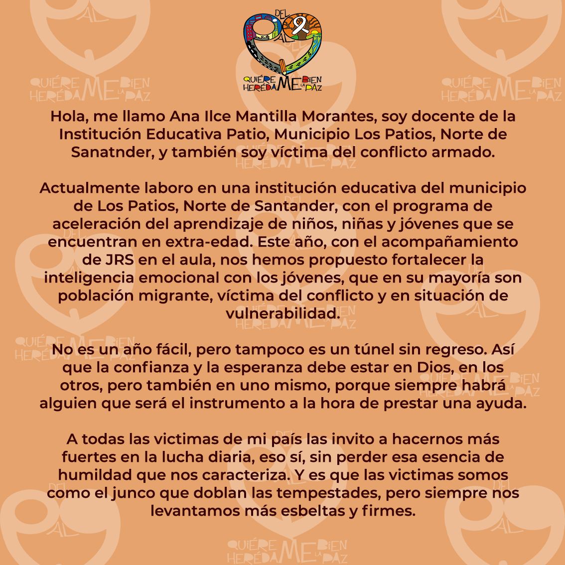 "A todas las víctimas de mi país las invito a hacernos más fuertes"